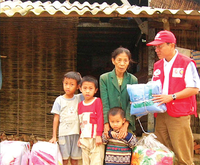 Không chỉ nặng tình với bà con nghèo ở địa phương, khi có chủ trương từ Trung ương Hội CTĐ Việt Nam chung tay hỗ trợ người dân nghèo ở vùng biên giới tại Lào, anh đã tiên phong "xin phép" lãnh đạo tỉnh sang thăm và ký các chương trình hoạt động với các Hội CTĐ tỉnh phía bạn.  Anh chia sẻ qua những chuyến đi, Hội CTĐ tỉnh "bắt tay" cam kết giúp phía bạn nâng cao năng lực cho cán bộ CTĐ, xóa nhà tạm, tạo sinh kế, khám điều trị cấp phát thuốc; cứu trợ khẩn cấp khi gặp thiên tai, trao quà cho người nghèo vào dịp lễ tết...