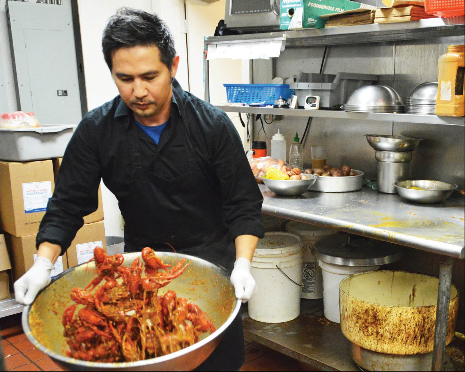 Vừa thưởng thức, tôi may mắn gặp được Trọng Nguyễn là chủ của nhà hàng và đầu bếp chính. Anh giải thích những gì làm cho món cajun của mình giúp cho tôm hùm đất nơi đây có vị đặc biệt. “Chúng tôi rắc lên tôm gia vị Viet - Cajun, hỗn hợp đặc trưng này kết hợp hương vị truyền thống của Việt Nam với các loại gia vị và nguyên liệu cajun thông thường”. Trọng Nguyễn cho rằng anh ấy đã kế thừa khả năng nêm nếm hương vị từ bà ngoại của mình. “Hồi còn ở Việt Nam, bà ngoại của tôi là một đầu bếp rất tuyệt vời. Vì vậy, tôi có khả năng nhận biết nhiều hương vị từ nhiều năm sống cùng với bà qua việc giúp đỡ chuẩn bị món ăn”.