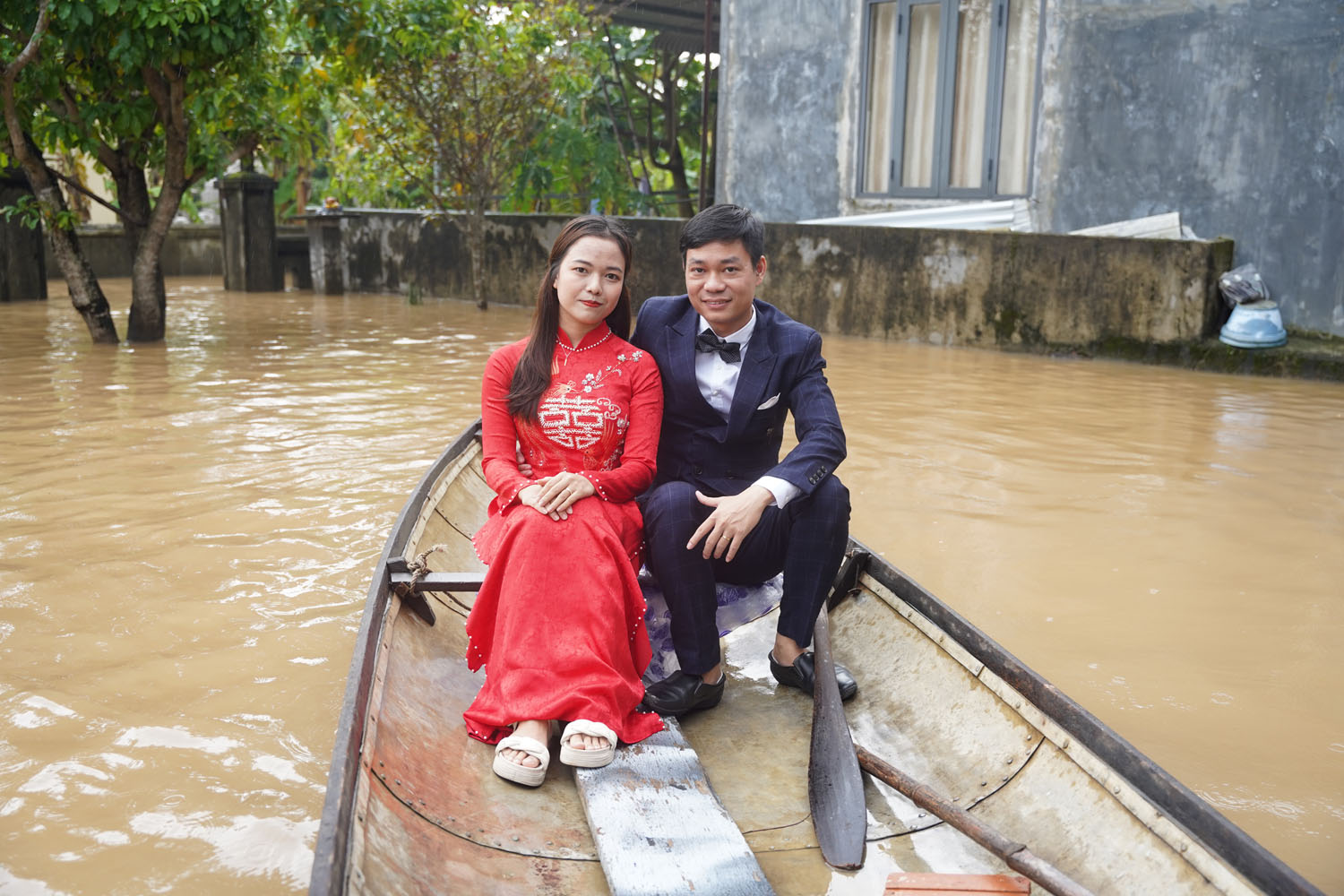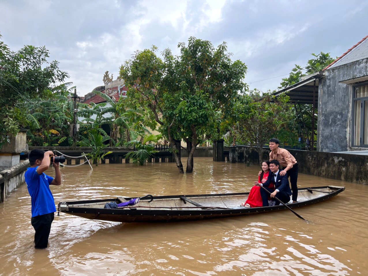 Lễ đính hôn diễn ra trọn vẹn dù trời mưa, nước ngập