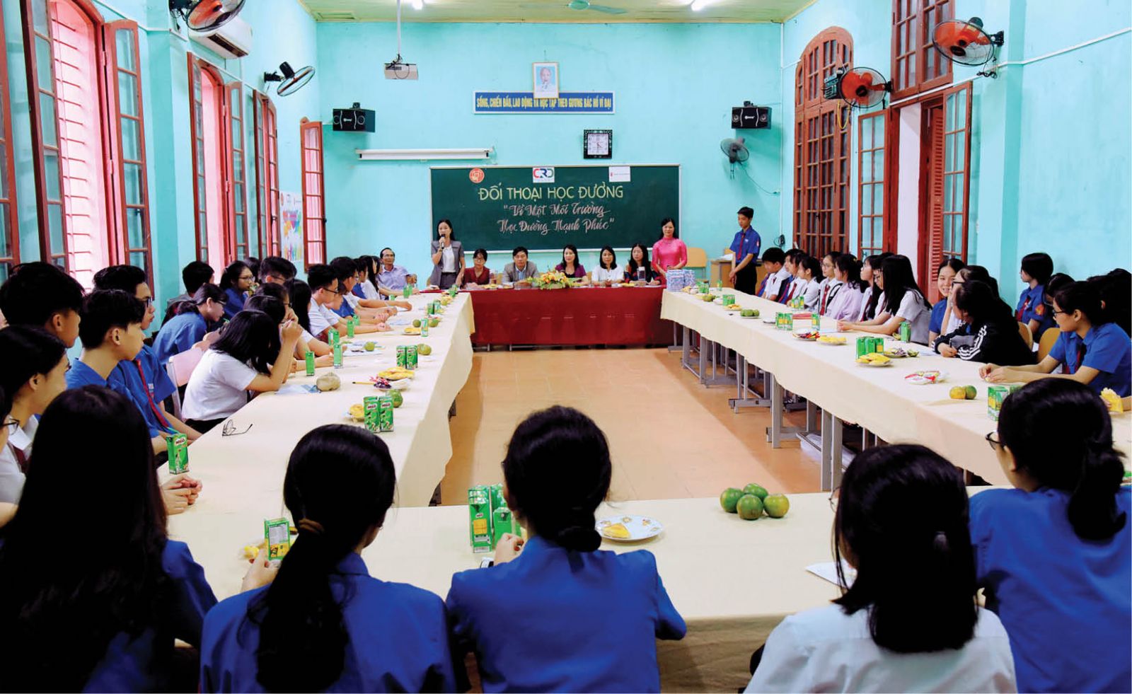 Buổi đối thoại có đại diện lãnh đạo trường và cha mẹ học sinh để lắng nghe những chia sẻ của các em