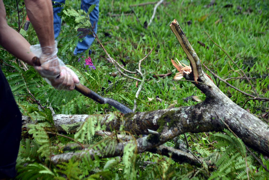 Để "giải phóng" được các cành cây, phải dùng rựa để chặt nhỏ