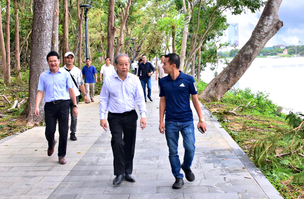 Chủ tịch UBND tỉnh Phan Ngọc Thọ đến động viên và đi dạo trên tuyến đường sau khi được dọn xong