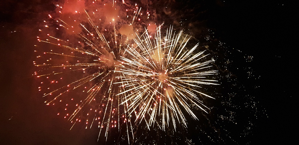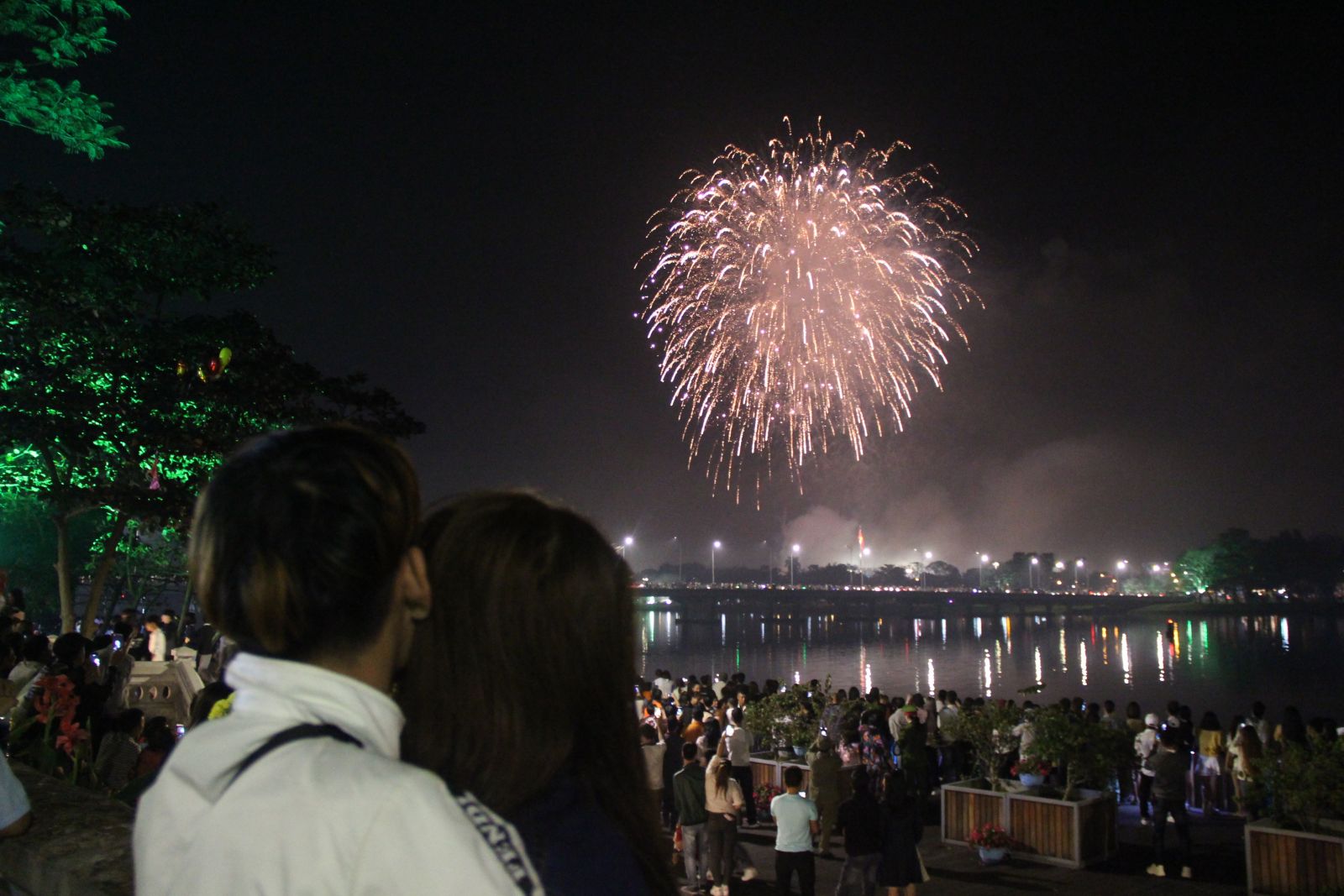 Pháo hoa tỏa sáng trên bầu trời Hương Trà đúng vào khoảnh khắc giao thừa