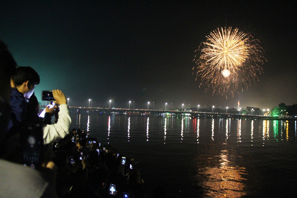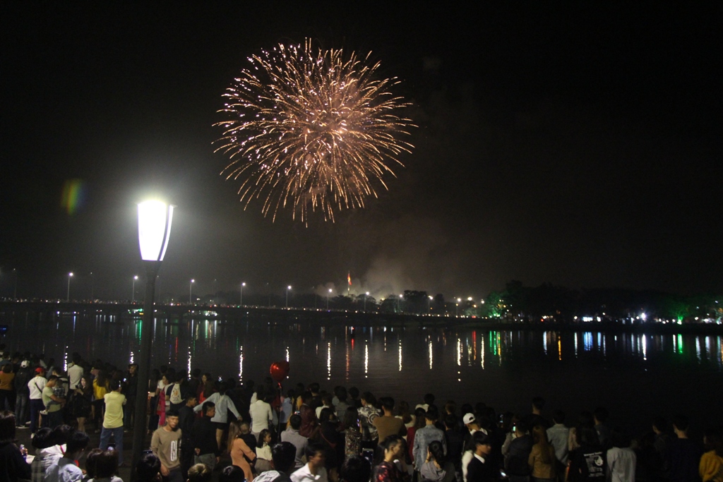 Đúng khoảnh khắc giao thừa, khi đồng hồ điểm 0g, màn trình diễn màu sắc được phô diễn trên bầu trời cũng là lúc người dân vui mừng chia tay một năm cũ, và đón một năm mới. Từ khi vực cầu đi bộ dọc sông Hương, hàng ngàn người dân và du khách đã cùng hướng về Kỳ Đài đến ngắm khung cảnh lung linh của hoàng thành về đêm và không gian pháo hoa tuyệt đẹp giữa tiết trời tết tạnh ráo xứ Huế.