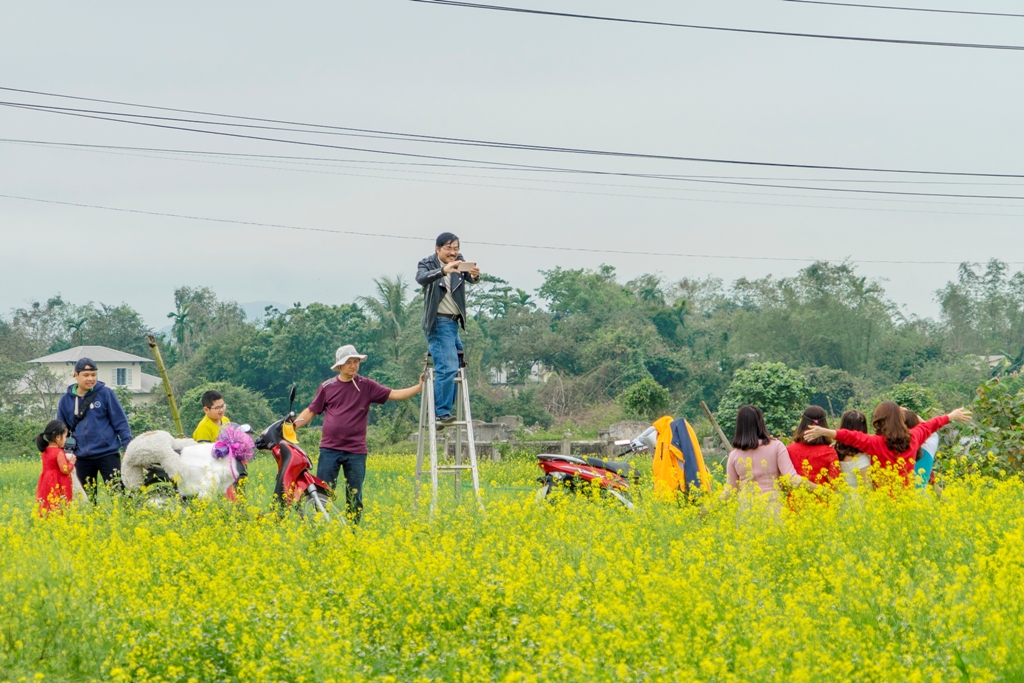 Tuy mùa hoa mới bắt đầu nhưng các vườn cải tấp nập các bạn trẻ, các cặp uyên ương, vợ chồng dẫn con gái nhỏ tới chụp, ngay cả các cặp vợ chồng trung niên cũng lên đây để tìm cho mình những bức hình đẹp. Để có thể vào vườn chụp, mỗi nhóm phải trả cho chủ vườn 20 nghìn đồng/lượt. Cũng có nơi chủ vườn cải miễn phí. Tránh tình trạng giẫm đạp lên hoa, hầu hết các khách chụp rất thận trọng trong di chuyển.