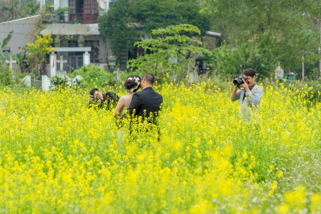 Nhiều đôi uyên ương chọn vườn cải để chụp ảnh cưới