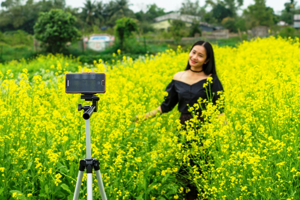 Thùy Nhiên (đang làm việc tại TP. Hồ Chí Minh) mê mẩn với hoa cải nên tự lưu lại những kỷ niệm ở quê nhà