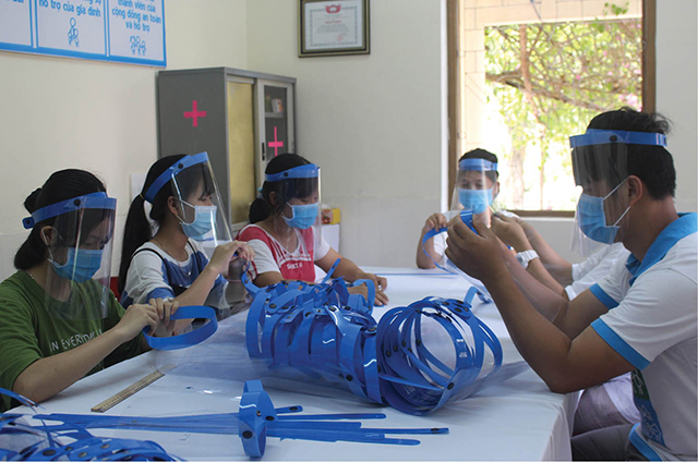 Chị Nguyễn Thị Kim Dung, Giám đốc Làng trẻ em SOS, kể: Trong những ngày cao điểm đối với đại dịch, từ món tiền ít ỏi dành dụm được, các mẹ và các em ở Làng đã gom góp mua những vật dụng để tự tay làm ra hơn 200 chiếc mũ bảo hộ chắn giọt phòng dịch COVID-19. Số mũ này được gửi tặng cho những người đang làm nhiệm vụ tuyến đầu phòng dịch lúc ấy. Thời gian này, các em còn tham gia thi vẽ tranh, múa hát trong khuôn khổ nội bộ để tuyên truyền, cổ động phòng chống dịch cùng toàn xã hội.