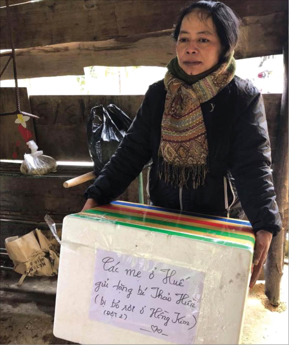 Trường hợp bé Nguyễn Văn T., hơn 6 tháng tuổi, ở Hương Văn (TX. Hương Trà) là một câu chuyện thương tâm khác. Lọt lòng, mẹ lìa xa, ba phải ra Vinh làm thuê, bà nội 82 tuổi nuôi cháu ở tuổi gần đất xa trời. Ba T. là anh Nguyễn Văn Th. được một giám đốc giới thiệu về HHTSMTH nên đã nhờ người đăng thông tin. “Admin” Hoài Anh kết nối huy động sữa của một số mẹ giúp bé từ đó đến nay, chị còn kêu gọi hỗ trợ máy hâm sữa, bỉm, áo quần… cho T.