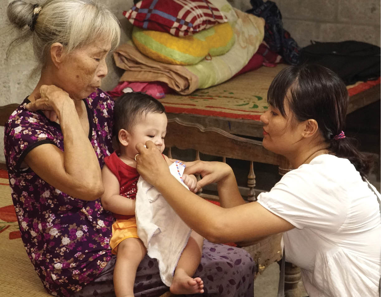 Bà Thẩm Thị L., mệ nội bé mới phẫu thuật về nên vừa nói vừa thở ra chừng mệt nhọc: “Trộm vía thằng cu ngoan mấy o ơi! Cháu tăng cân đều, mới đi tiêm phòng về mà không quấy khóc chi hết. May nhờ mấy mẹ chơ tui không biết mần răng mà nuôi cháu. Chừ gắng cho qua ngày đoạn tháng, được khúc mô, mừng khúc nấy”. Vừa dứt lời, nước mắt bà lăn ra từ khóe mắt đồi mồi khô khốc, hai cánh tay gầy khẳng khiu nựng nựng cháu dỗ dành giọng nghẹn lại: “Ngoan, ngoan mệ thương nghe con”!!!