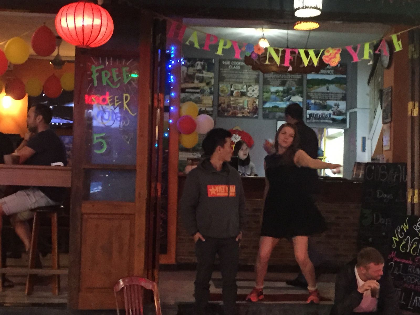 | Nhiều du khách nước ngoài tập trung ở khu phố Tây (Phạm Ngũ Lão) cùng chờ đón năm mới. |