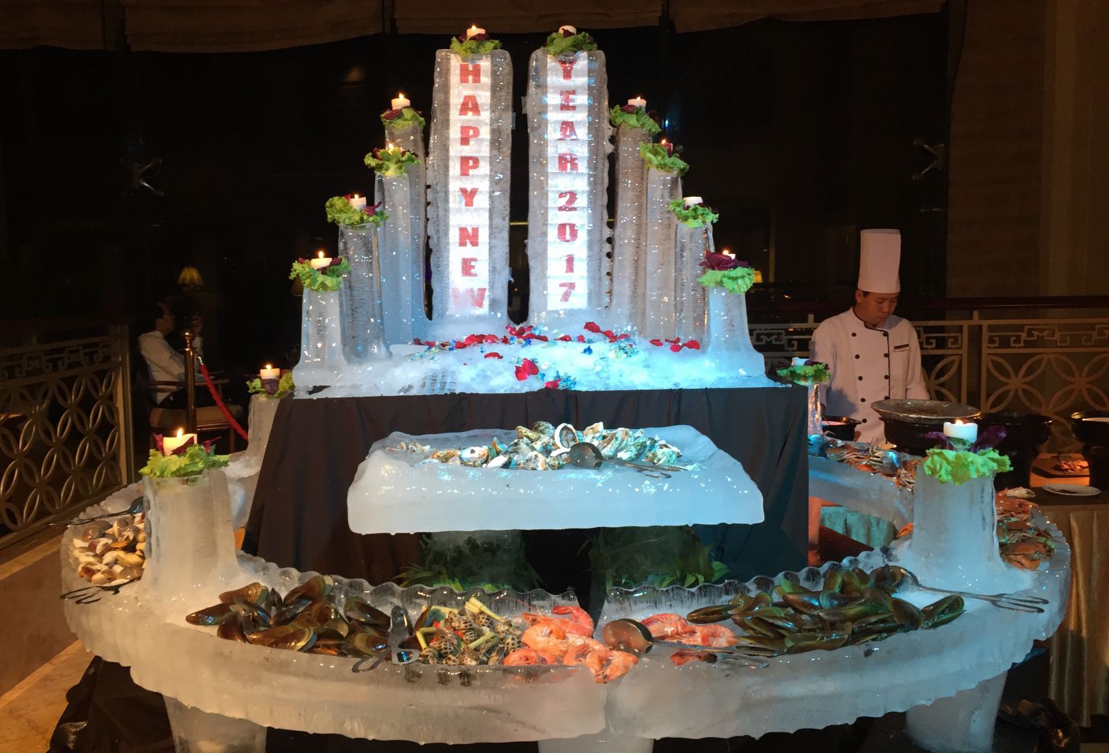 | Tháp băng với dòng chữ "Chúc mừng năm mới 2017". |