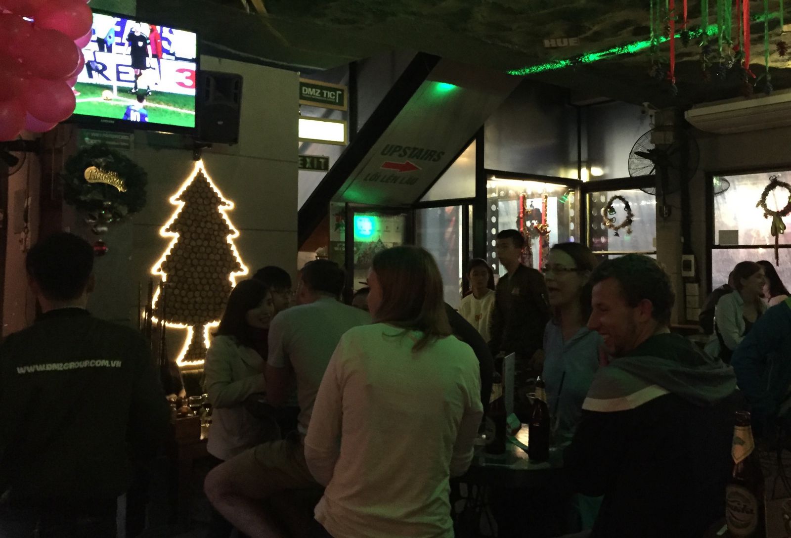 | Trong khi nhiều du khách lại chăm chú theo dõi chương trình bốc thăm trong một quán bar gần đó. |