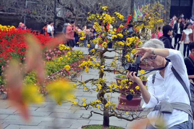 Du khách ghi lại những hình ảnh đầy sắc xuân trong Đại Nội
