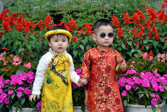 Hai vị khách nhí tạo dáng trong Đại Nội