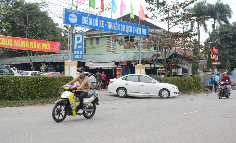 Việc đậu đỗ và tổ chức phân bố xe thăm viếng chùa Linh Mụ diễn ra trật tự