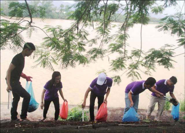 Khệ nệ xách túi rác nặng, Ngọc Anh, nhân viên Ana Mandara Hue Resort (thị trấn Thuận An, huyện Phú Vang) chia sẻ: “Khi nghe kế hoạch nhặt rác ở chùa Thiên Mụ, em cùng nhiều bạn khác thu xếp thời gian để tham gia. Không chỉ nhặt rác, nhóm còn kêu gọi mọi người từ du khách, cô chú bảo vệ, bán hàng rong quanh đó cùng chung tay bảo vệ môi trường nói chung và không gian du lịch Huế nói riêng.