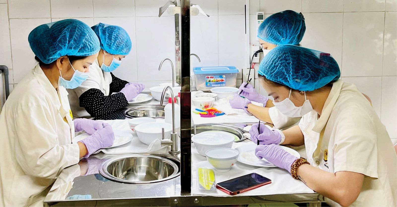 Đội ngũ nhân viên tinh chế yến Minh Trường