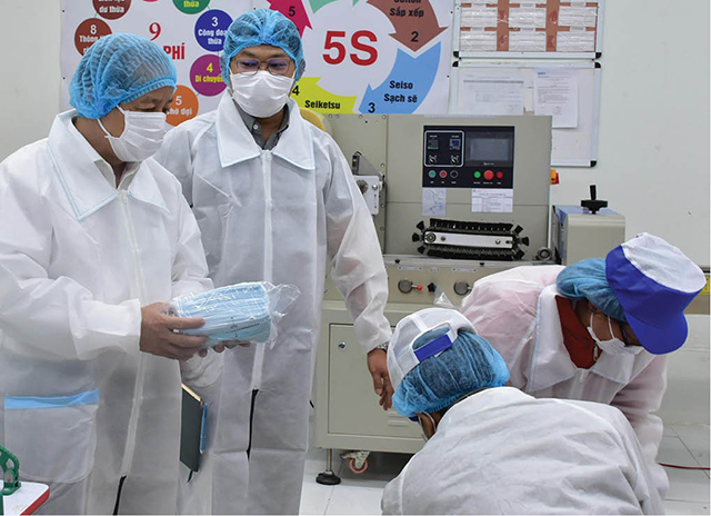Lãnh đạo tỉnh kiểm tra tình hình sản xuất khẩu trang phòng chống dịch COVID-19
