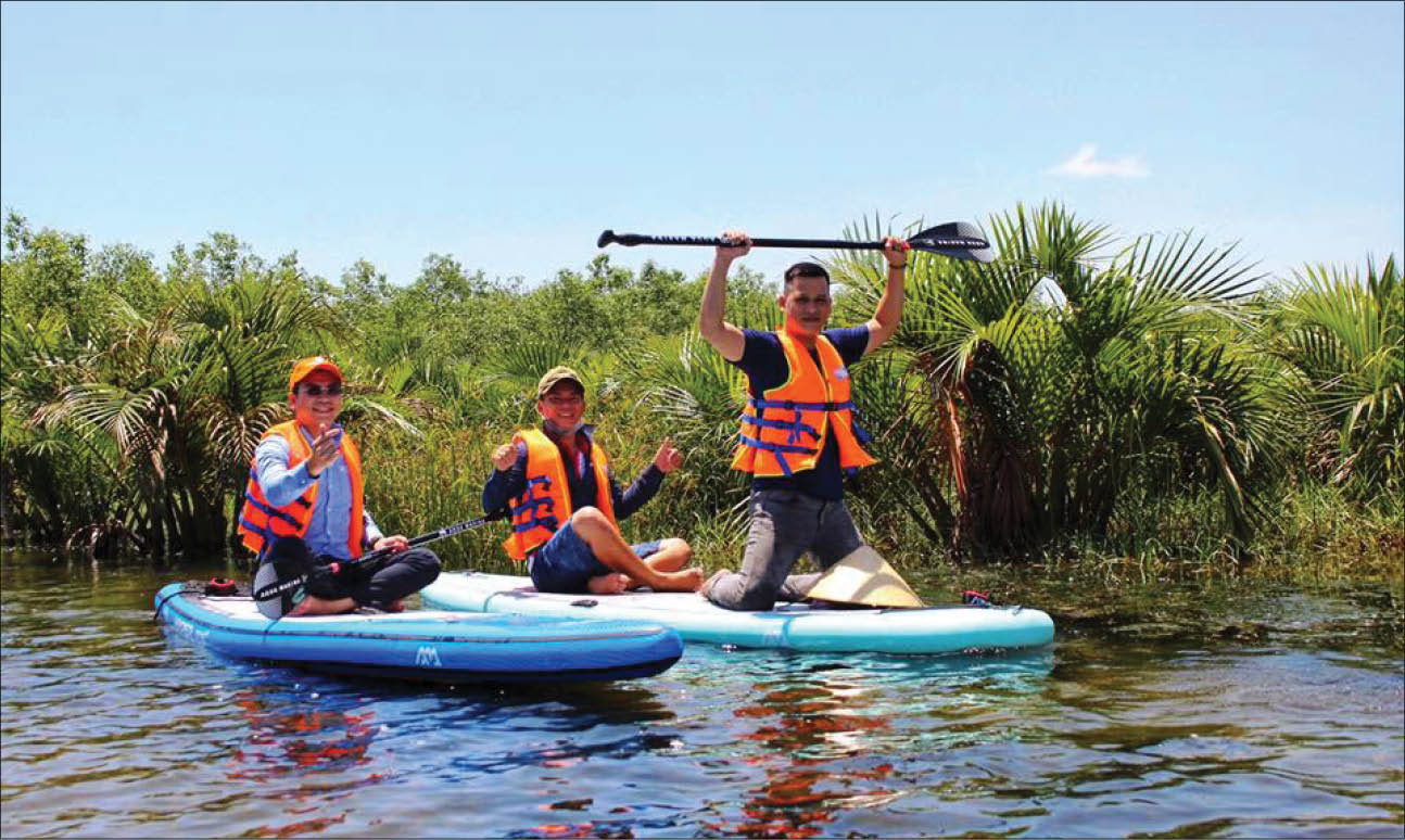 Khách du lịch tham quan rừng ngập mặn ở đầm phá xã Quảng Lợi (huyện Quảng Điền). Ảnh: QUỲNH VIÊN