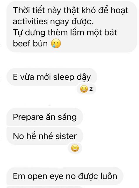 Bên cạnh đó, cũng có những người “nửa Anh, nửa Việt” sau nhiều năm công tác tại nước ngoài. Điều này đã đối mặt với nhiều ý kiến trái nhiều, nhất là từ cộng đồng mạng, cho rằng, họ đã thực sự cố tình quên tiếng Việt. Song Bích Hằng, với 7 năm sinh sống và làm việc ở Mỹ chia sẻ, tuy không cố tình, nhưng đôi lúc trong vô thức vẫn chêm vài chữ tiếng Anh như bản năng, bởi cô bạn thú thật là những chữ này dùng bằng tiếng Anh phổ biến hơn cả. Vả lại, ngay tại Việt Nam, mà gần hơn là Huế, nhiều người cũng thường dùng là “up status” “rep inbox”...