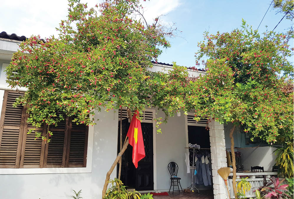 Cây xi rô cho quả nhiều màu sắc phía trước ngôi nhà ông Quốc Long