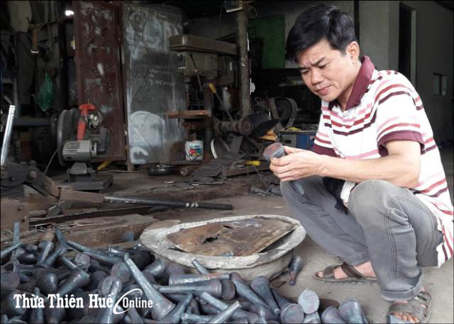 Anh Huỳnh Thế Tiến hiện là giáo viên ở một trường tiểu học trong thị xã. Ngoài giờ lên lớp, anh dành hết tâm huyết cho nghề rèn. Cái khó bó cái nghèo, thời điểm năm 2007, anh Tiến từng định “thả tay” do điều kiện kinh tế quá khó khăn, nhưng sau được thị xã động viên, tạo điều kiện viết đề án, tiếp cận các nguồn vốn và anh em bạn nghề chung tay, nên lại quyết tâm làm. Đến nay, từ việc đầu tư máy dập phôi, cơ sở Trường Tiến đã mở rộng hơn quy mô nhà xưởng, đầu tư thêm máy dập trục khuỷu, máy tiện, máy cắt. Giữa câu chuyện của chúng tôi, âm thanh rõ nhất vẫn là những tiếng búa chan chát từ những bếp lò gần đó. Anh Tiến bảo, bây giờ ít nhà nào có thể lấy thu nhập chính từ rèn nhưng nghề vẫn sống. “Lạ lắm, đôi khi ngồi cả ngày ngoài chợ không bán được sản phẩm chi nhưng đêm về vẫn một hai phải đỏ lửa bếp rèn. Với người làng, đỏ bếp rèn không hẳn bởi kinh tế mà vì không cưỡng lại được ý thích muốn được làm nghề”, anh chia sẻ.