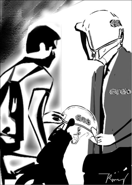 Mỗi lần ra Hà Nội, ngó cảnh ồn ào, bụi bặm lại nhớ Huế thanh bình. Lần này Hà Nội trong mắt mình chút ít đã khác nhờ Grab (một ứng dụng trên điện thoại để đặt và điều phối xe phục vụ di chuyển). Muốn di chuyển, bật Grab, vài ba phút bác tài đã xuất hiện, xe hơi sang, mát lạnh, giá rẻ. Được cái biết trước giá tiền nhé, thích thì chọn, không thì thôi; họ tên tài xế kèm ảnh chân dung; biển số xe rõ ra đó. Grab car đầu tiên để lại nhiều ấn tượng bởi sự nhiệt tình, kể chuyện lái Grab rất hăng, “bảo vệ” anh em trong nghề và thương hiệu khỏi chê. “Phải tập thích nghi thời cuộc thôi các cô ạ. Tôi bỏ làm ở công ty, chạy Grab sống tốt, nuôi được vợ con đấy. Nhiều người lao động có việc làm, kiếm thêm thu nhập nhờ nó. Cũng nộp thuế, chiết khấu và tham gia hợp tác xã hẳn hoi đấy chứ không phải nhăng cuội như người ta nói đâu”. Ôi, với người mới “đăng nhập” xài Grab nghe thiệt mê!