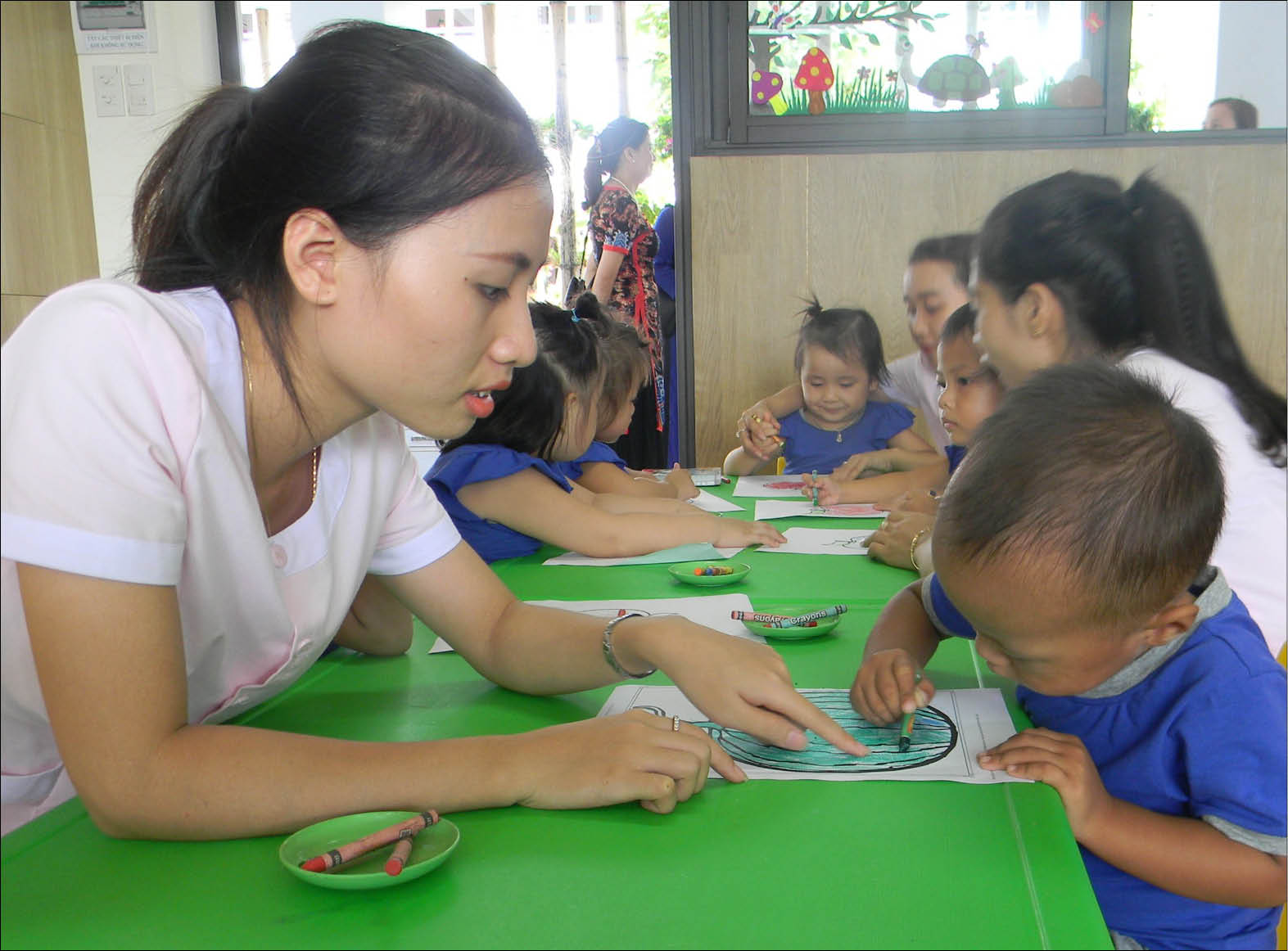 Chăm sóc trẻ của công nhân tại Nhà trẻ Công ty SCAVI Huế (ảnh minh họa)