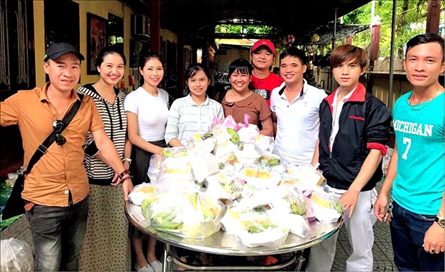 Hình ảnh những hoàn cảnh thương tâm cần giúp đỡ như ông Sang, những chuyến thiện nguyện san sẻ yêu thương luôn tràn ngập trên facebook của anh Bùi Khánh Nam và chị Bùi Kim Phụng (TP. Huế). Từ những bệnh nhi ung thư, những bệnh nhân nghèo phải điều trị hàng tháng trời ở bệnh viện, đến những người nghèo, người neo đơn nằm xuống không có tiền lo hậu sự... được anh Nam và chị Phụng đứng ra kêu gọi mọi người chung tay giúp đỡ. Với sự chung tay của nhiều người khác, họ mở quán cơm chay từ thiện ở đường Hồ Đắc Di, lo từng bữa ăn cho bệnh nhi ung thư, phát cơm miễn phí cho bệnh nhân nghèo, nuôi bệnh, lo gạo hàng tháng cho những hộ nghèo quanh thành phố... Chiều 18/3, 500 suất cháo, sữa được nhóm thiện nguyện này phát miễn phí cho những bệnh nhân nghèo tại Bệnh viện Đại học Y dược Huế. Chị Kim Phụng chia sẻ: “Mỗi lần tặng cơm là mỗi lần nhói lòng. Cơm có giới hạn, bệnh nhân thì nhiều nên vẫn không đủ với bệnh nhân nghèo. Thương lắm nhưng không biết làm sao”.