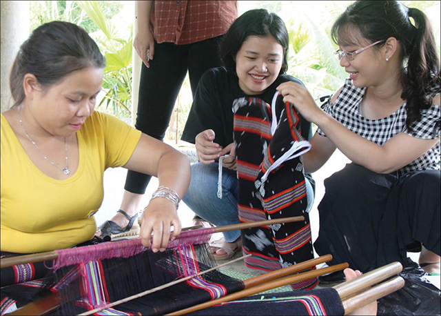 Trên bộ khung độc đáo với các thanh gỗ, tre nứa theo hai phương ngang dọc qua đôi bàn tay luồn lách sợi khéo léo, nghệ nhân tuổi 50 A Viết Thị Nhi xúc động, chậm rãi hướng dẫn từng thao tác cho các bạn trẻ. Bà kể, 37 năm làm nghề nhưng chưa khi nào thấy vui như thế bởi được đón đoàn khách từ phương Nam đến tìm hiểu nghề truyền thống của đồng bào mình. “Ngay cả các bạn ấy còn yêu Zèng thì huống gì chúng tôi, được sinh ra và lớn lên trên nền tảng mà cha ông để lại. Không chỉ hướng dẫn cho các bạn ấy biết về Zèng, chúng tôi cũng học được các bạn ấy những họa tiết hiện đại, mới lạ” – nghệ nhân Nhi nói.
