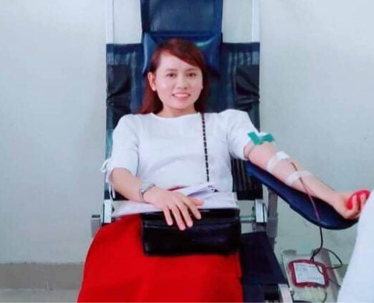 Mỹ Chi trong một lần hiến máu tình nguyện