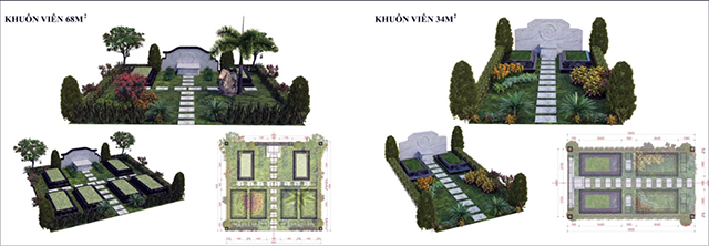 Phối cảnh một phần mộ gia tộc tại Hương An Viên – Huế, nơi an nghỉ các thế hệ trong dòng tộc và là công viên sinh thái của người đương thế đến thăm mộ