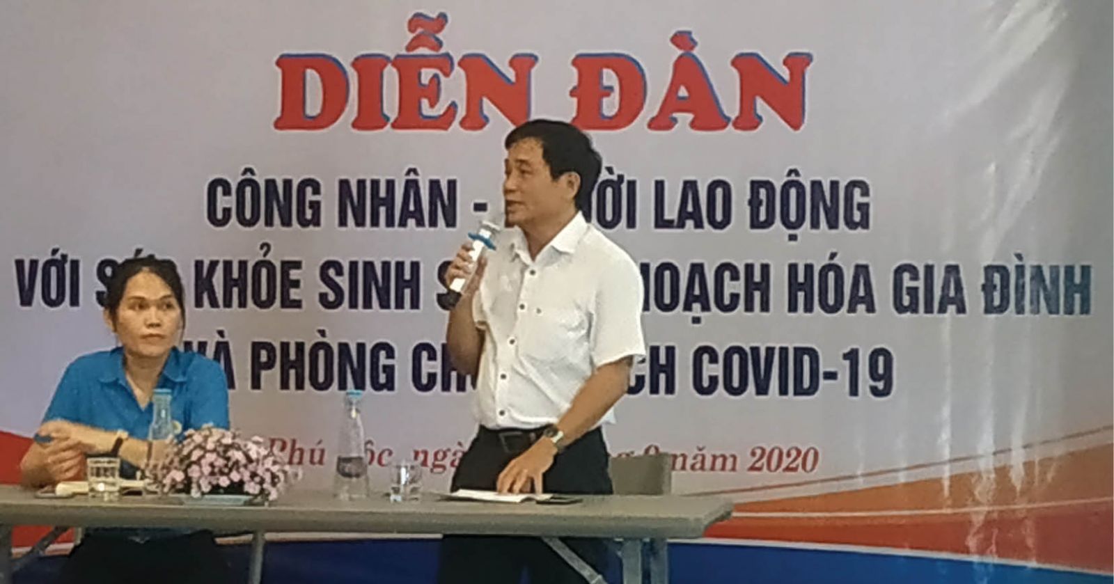 ThS.BSCKII Phan Đăng Tâm nói chuyện tại diễn đàn truyền thông về sức khỏe sinh sản cho người lao động