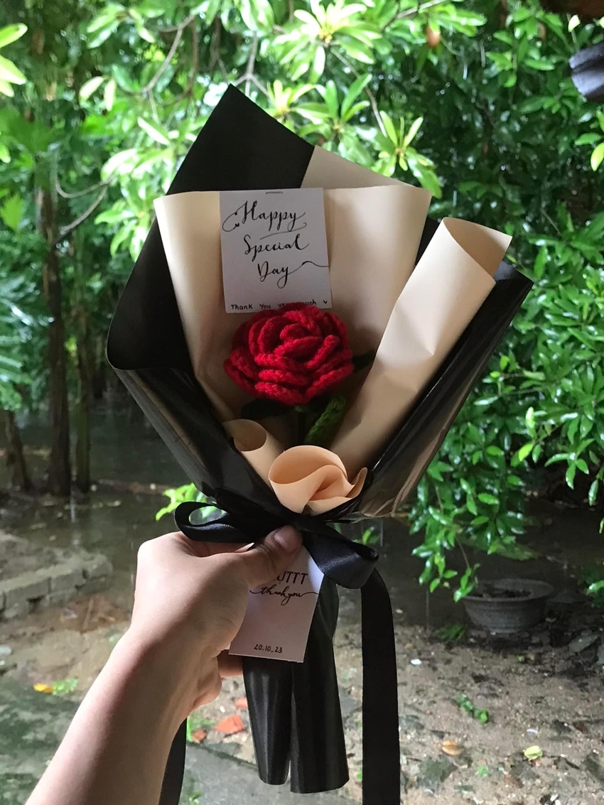 “Mình vốn thích đan len nên việc tự tay làm cũng không khó. Với hoa đan bằng len, mình có thể tự do lựa chọn màu sắc và kiểu dáng. Nguyên liệu cũng tương đối đơn giản và phù hợp với túi tiền của mình. Từ đầu tháng, mình đã đi mua nguyên liệu, cũng như làm theo những hướng dẫn trên internet để chuẩn bị hai bó hoa dành tặng mẹ và chị”, Khánh Chi chia sẻ.