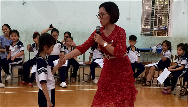Sau khi khởi động với trò chơi Yoga cười, ThS.Thúy Hằng giới thiệu với các em học sinh chủ đề đầu tiên - Quyền trẻ em một cách nhẹ nhàng thông qua hoạt động khám phá âm nhạc - cùng nhau hát bài Quyền trẻ em của nhạc sĩ Nguyễn Văn Chung. Nghe các bạn hát xong, ThS.Thúy Hằng giảng giải: “Trẻ em được quyền sống hạnh phúc, được chăm sóc, được bảo vệ, che chở trước bạo lực nguy hiểm, trước những điều không hay như xâm hại tình dục (XHTD); các em được đi học, được vui chơi, giải trí,... Các em nhớ về quyền của mình chưa nào?”. Tụi nhỏ đồng thanh thật to: “Dạ nhớ!”.