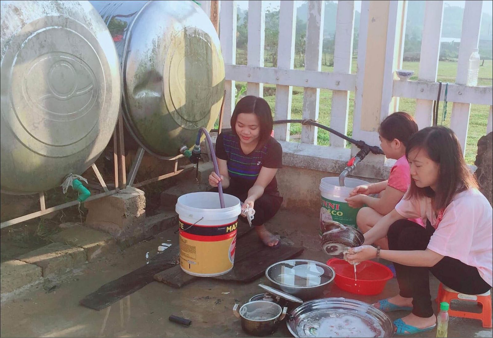 Nước sạch qua xử lý được dẫn thẳng về bể chứa tại nhà công vụ Trường THPT Hương Lâm