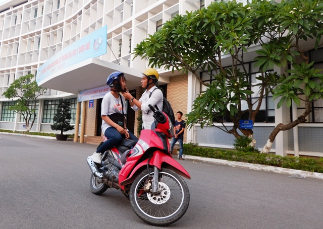 Những ngày giữa hè, khi mà sinh viên đang có những kỳ nghĩ ở quê thì các thành viên của “Huebike” vẫn miệt mài ở lại Huế để… làm xe ôm. Theo chân “bác tài” Nguyễn Lương Bằng, sinh viên Trường ĐH Y dược – thành viên “Huebike” mới thấy sự nhiệt tình vượt lên trên mức phí bèo bọt của mỗi cuốc xe. Không ngần ngại, vừa nhận được cuộc gọi của một sinh viên có nhu cầu đi xe ôm từ nhà trọ ra bến xe để bắt xe về nhà, Bằng tức tốc kiểm tra xe không quên mang theo một chiếc mũ bảo hiểm cho khách. “Cứ hễ các bạn sinh viên gọi là mình lại lên đường. Trường hợp bận sẽ liên hệ ngay thành viên trong nhóm. Không cần biết đoạn đường ấy bao xa, chỉ cần biết hành khách là sinh viên, có nhu cầu đi lại, chúng mình sẽ phục vụ ngay”, Bằng kể.