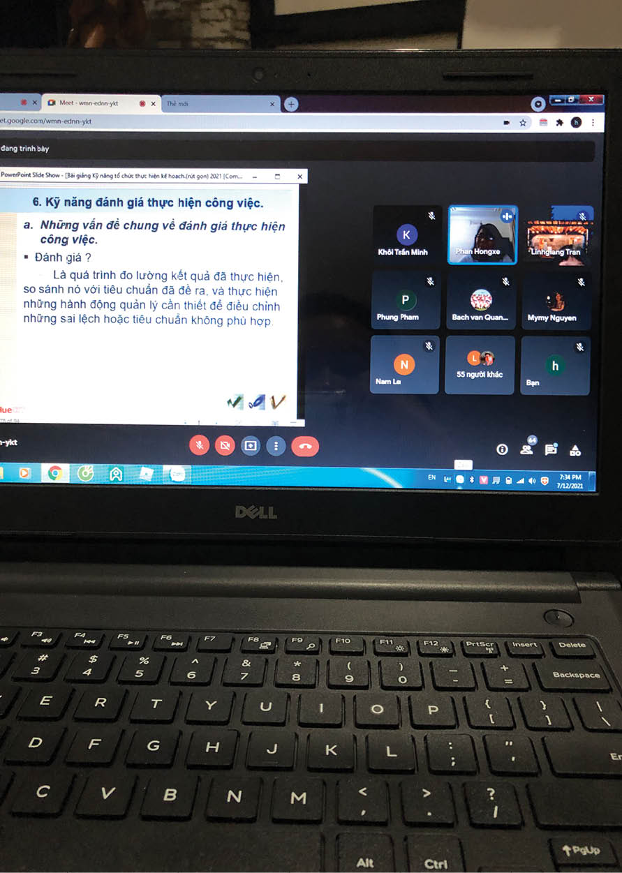 Ngày đầu khai giảng đúng thứ 7. Ban đầu, lịch là 7h30, tôi ăn sáng vội rồi mở laptop ra ngồi đợi. Vài phút sau, cô phụ trách thông báo lịch khai giảng bắt đầu từ 8h. Tôi và nhiều anh chị khác cũng kiên nhẫn chờ đợi. Khi cô gửi đường link để vào lớp học ở nhóm zalo của lớp, những thành viên lần lượt click chuột vào. Phía màn hình điện thoại/laptop hiện lên dòng chữ “bạn sẽ tham gia họp khi ai đó đồng ý”. Tôi nhấp chuột và chờ đợi.