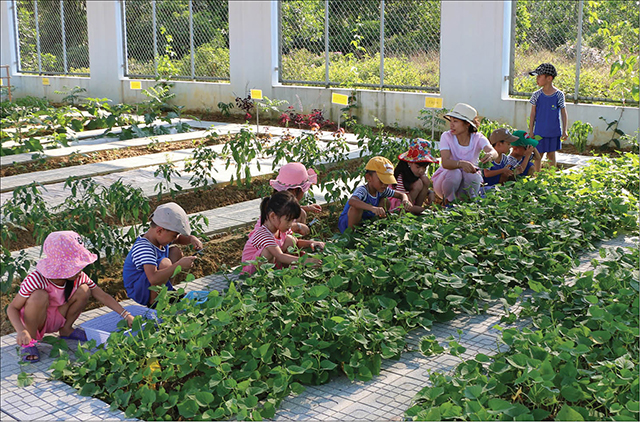 Một tiết học thực hành tham quan vườn rau hữu cơ của các bé học sinh Trường mầm non Scavi (ảnh do đơn vị cung cấp)