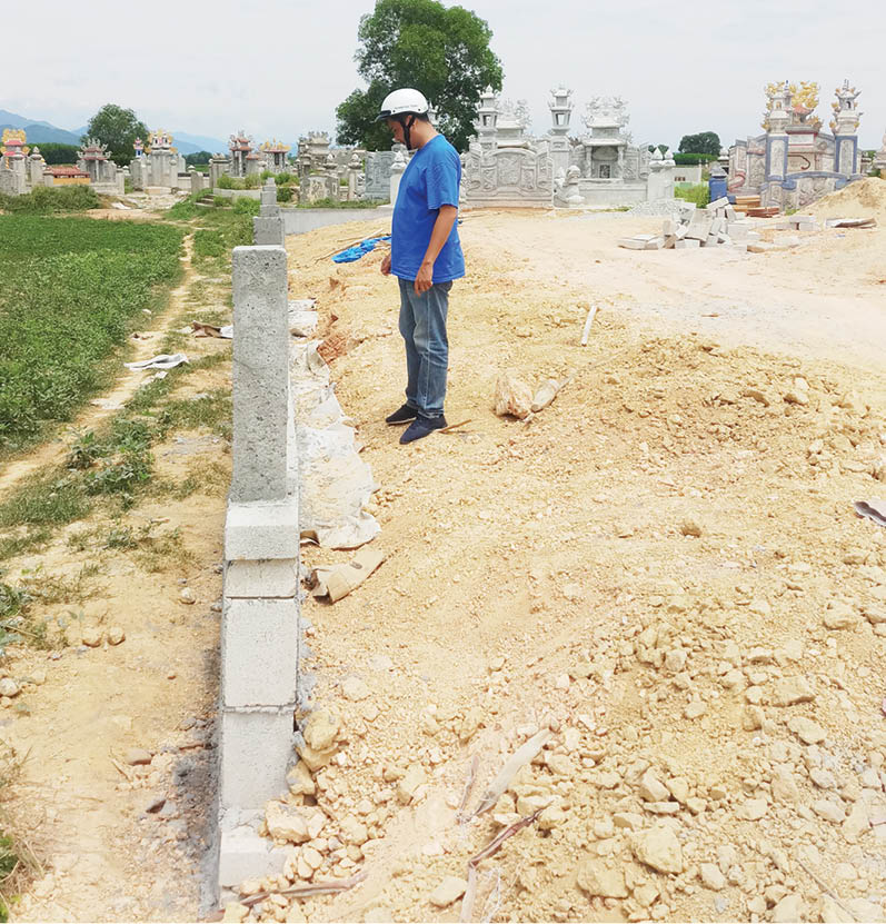 Một hộ dân xây dựng tường rào cho ngôi mộ gia đình, lấn chiếm đất nghĩa địa tại xã Phong Sơn (Phong Điền) bị đình chỉ thi công