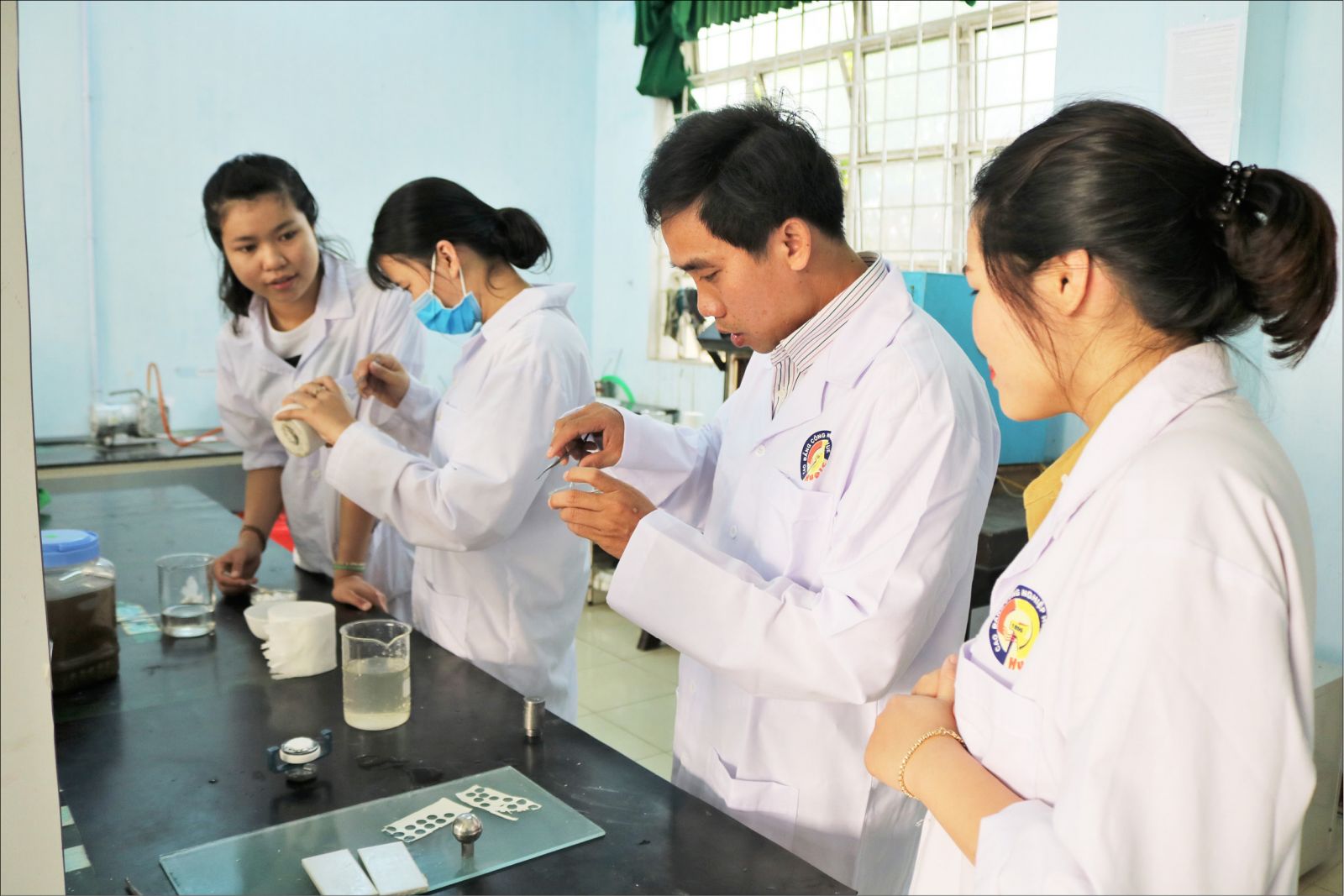 TS. Lê Đại Vương (thứ 2 bên phải) hướng dẫn sinh viên nghiên cứu khoa học
