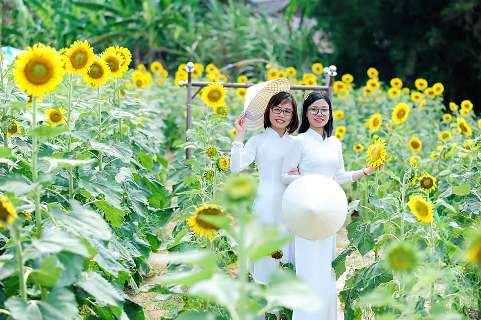 Vẻ đẹp áo dài truyền thống được các bạn nữ lựa chọn khi check-in tại cánh đồng hướng dương