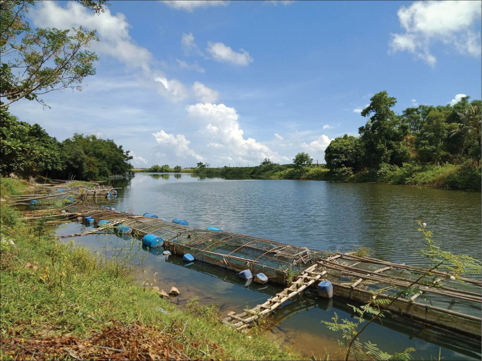 Sông Bồ-dòng sông "chết" trong lũ 1999 qua xã Quảng Thọ (huyện Quảng Điền) hồi sinh với mô hình nuôi cá nước ngọt. Ảnh: K.O