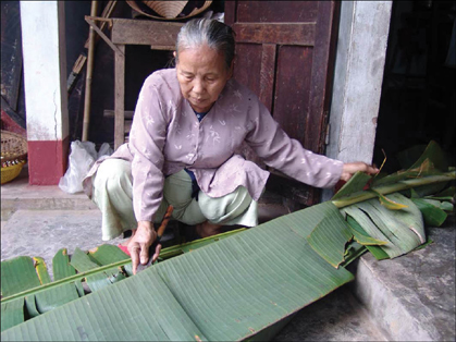 Mệ Văn Thị Lang, đã ngoài 80 tuổi rồi nhưng vẫn không quên công việc đem lá chuối về chợ bán vào những ngày giáp Tết. Theo mệ Lang, việc này mệ làm đã mấy chục năm nay rồi. Nhờ vậy, mà Tết đến có cái ăn, cái mặc. Hay chị Hoàng Thị Thoan, nhờ lá chuối này mà chị vừa sắm được áo quần cho con, đồng thời còn mua được thực phẩm về cúng gia tiên nhân dịp xuân mới.