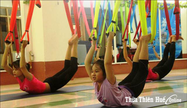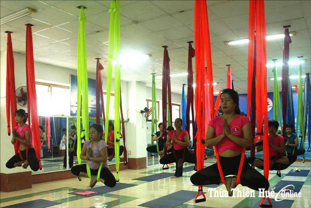 Những động tác thiền, trồng cây chuối trên không tưởng chừng khó thực hiện được họ thể hiện thuần thục. Chị Hồ Thị Như Mai, giáo viên dạy yoga, Giám đốc Trung tâm Yoga Sức Sống Mới giới thiệu: “Bộ môn này là yoga bay, rất mới mẻ, du nhập vào Huế được gần 2 năm nay, nó phù hợp với mọi đối tượng”.