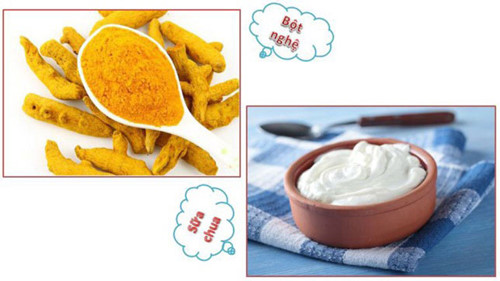 Chuẩn bị 2 thìa sữa chua, 2 thìa bột nghệ và 1 thìa nước ấm. Trộn đều các nguyên liệu lại với nhau rồi nhẹ nhàng thoa lên khắp mặt. Thư giãn khoảng 20 phút rồi rửa sạch và dùng khăn mềm thấm khô. Mỗi tuần áp dụng đều đặn 2 - 3 lần đến lúc thấy được sự thay đổi rõ rệt.