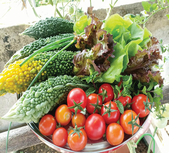 Nhiều năm qua, khu vườn hơn 30m2 của chị Trần Phượng Trang ở Tây Lộc, TP. Huế cung cấp nguồn rau củ đều đặn cho gia đình. Sử dụng các thùng xốp và chậu nhựa, chị trồng xà lách, cải, ngò, ném, dưa leo, mướp đắng… Gần đây, chị còn trồng thêm dâu tây trong chậu thử nghiệm và cho thu hoạch lứa đầu tiên. Ngoài tiết kiệm chi phí đi chợ, gia đình chị được ăn rau xanh tươi ngon, an toàn. “Chăm sóc vườn là thỏa thú đam mê trồng trọt. Thích nhất là gặt hái thành quả lao động và xả stress sau những ngày làm việc ở cơ quan”, chị Trang chia sẻ.