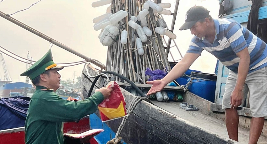 | Bộ đội Biên phòng tỉnh Thừa Thiên Huế tặng cờ Tổ quốc cho ngư dân Thuận An |