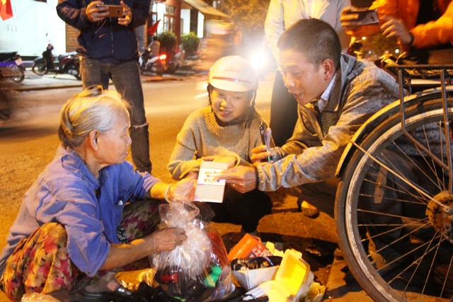 HNN.VN - Tối 3/2 (29 Tết), một nhóm bạn trẻ của Huế đã tranh thủ những đêm cuối năm cùng nhau xuống đường để hỏi thăm, chúc tết và lì xì những người đang tất bật với công việc mưu sinh vào thời điểm cận kề Tết Nguyên đán Kỷ Hợi 2019.